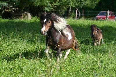 Un vrai pot-de-colle, elle est toujours fourrée dans nos pattes et arrive en trottant du fond du pré dès qu'elle nous voit !
